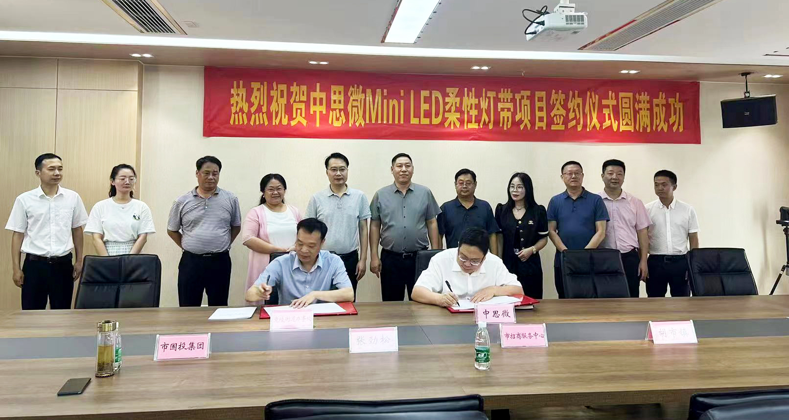 天門市竟陵辦事處簽黨委書記金紅波和廣東中思微光電股份有限公司董事長程勝鵬作為簽約代表出席簽約儀式。出席簽約儀式的還有:天門市人民政府黨組成員、副市長張勁松、天門經(jīng)濟開發(fā)區(qū)黨工委委員、副主任、天門市招商服務(wù)中心黨組書記、主任黃祥斌、天門市竟陵辦事處黨工委書記金紅波、天門市胡市鎮(zhèn)黨委書記肖勇、天門市胡市鎮(zhèn)黨委副書記、鎮(zhèn)長周林飛、天門市人民政府金融辦副主任賀宇慧、湖北天門國有資本投資運營集團有限公司副總經(jīng)理 潘銀龍、廣東中思微光電股份有限公司董事長程勝鵬、中思微副總經(jīng)理程鵬、中思微財務(wù)副總經(jīng)嚴(yán)必俊、中思微副總經(jīng)理唐春影、中思微總工程師邵雪江。